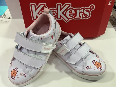 KICKERS TRAINER 2 VELCRO WHITE WITH PINK FLORAL