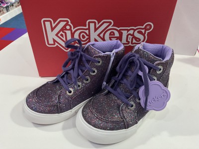 KICKERS GLITTER PURPLE HI TOP SIZE 26/ UK8.5 WAS £49.99