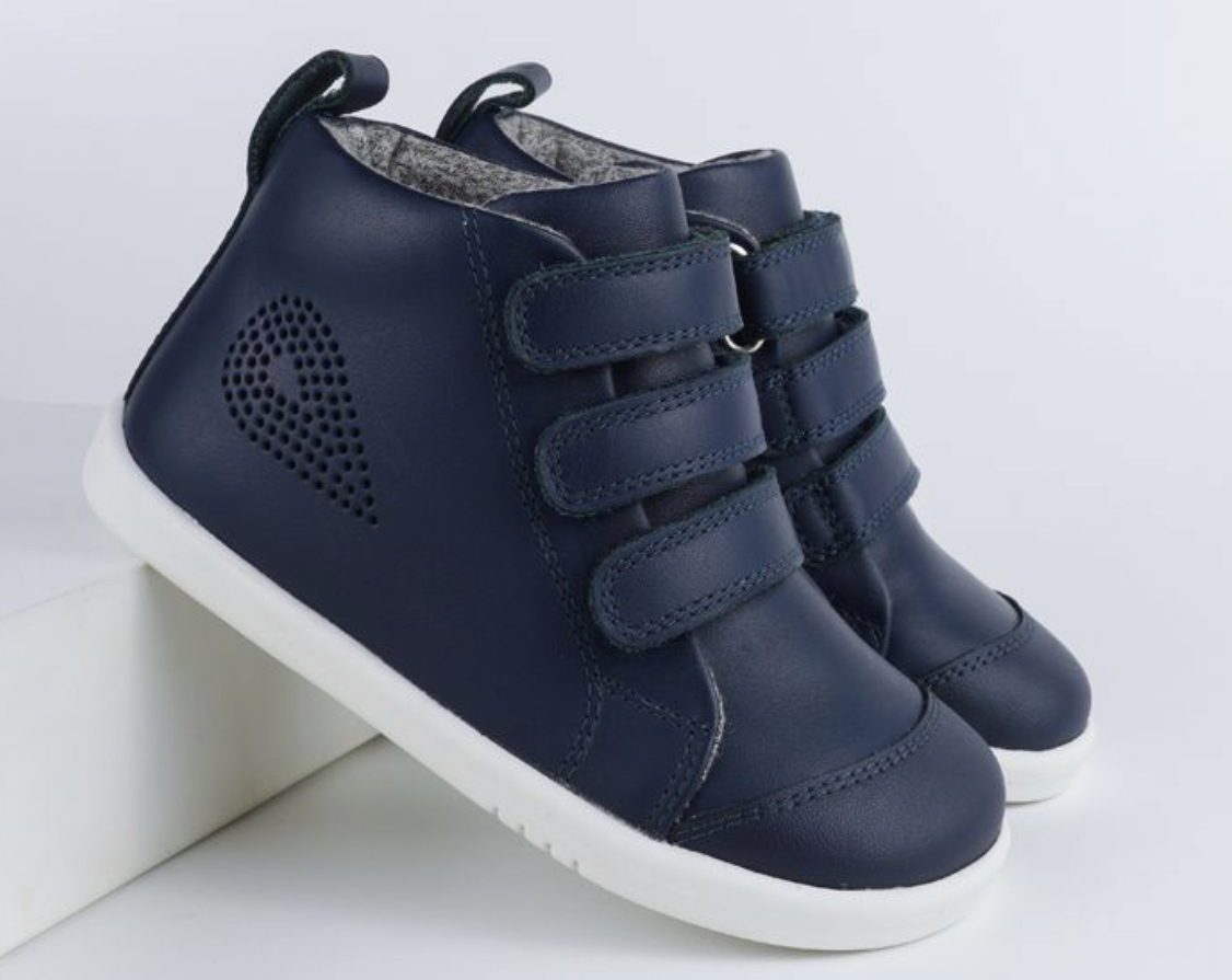 A fresh addition to the Grass Court collection, the Hi Court is our highly adjustable street-style boot perfect for everyday wear. Multi-strap fastenings make the Hi Court super adjustable to different foot widths and provide an easy, secure fit. With a cotton knit lining and premium navy matte-finish leather, kids will feel comfortable and cool in this playful style. This style fits true to size x