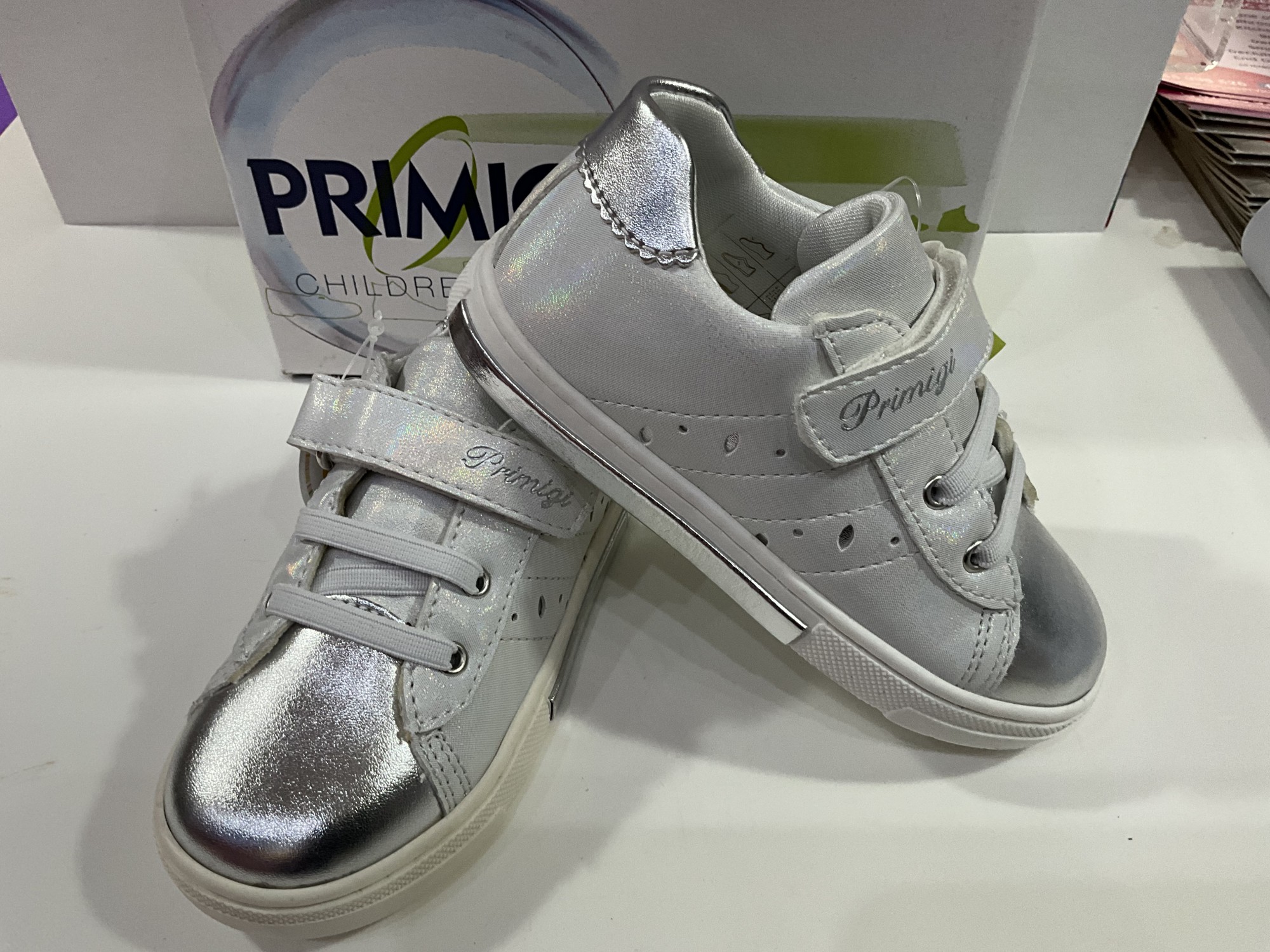PRIMIGI WHITE LEATHER TRAINER WITH SILVER DETAIL WAS £49.99