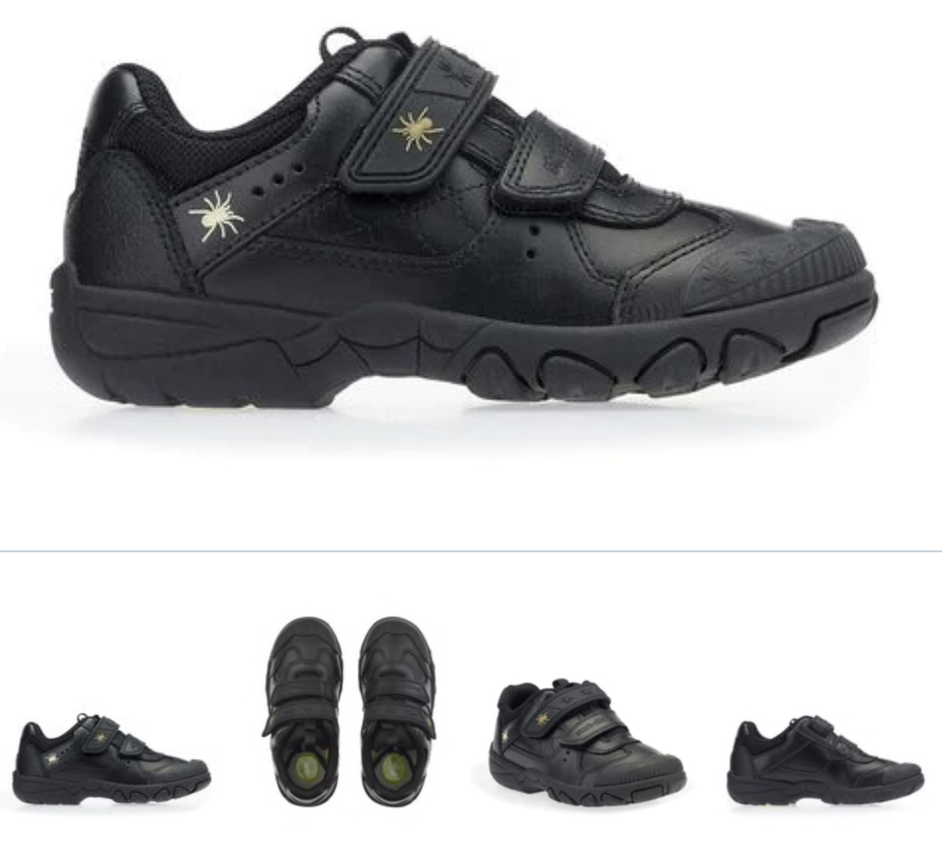 A hardwearing school shoe with flexible sole for safe playground antics. For lovers of creepy crawlies – with cool spider and web detailing that’s bound to impress. In soft black leather with cushioned footbed and padded ankle for extra comfort. Heel and toe protection helps to minimise scuffing