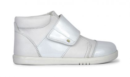 Combining elements of street style and creativity, the Boston Hi Top boasts the same understated style of its low-top counterpart. Finished in a smooth white colourway, with monochrome sole this boot features an ultra durable toe-cap and padded ankle-height collar. The Boston Hi Top uses different leather finishings for a textured effect, while wide strap closure provides adjustability and luxe quality and premium, full grain leather provides the breathability, flexibility and comfort that Bobux shoes are so loved for.