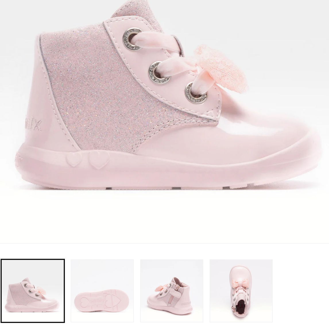 Shiny Pale pink patent leather ankle boots for baby, toddler girls by Lelli Kelly, with an embroidered logo on the heel. They fasten with laces for an adjustable fit and have a side zip and velcro tab for quick and easy changing. Softly padded around the ankle, they have a textile mesh lining and a leather insole. The practical, non-slip rubber outer soles have treads for improved grip on wet surfaces.