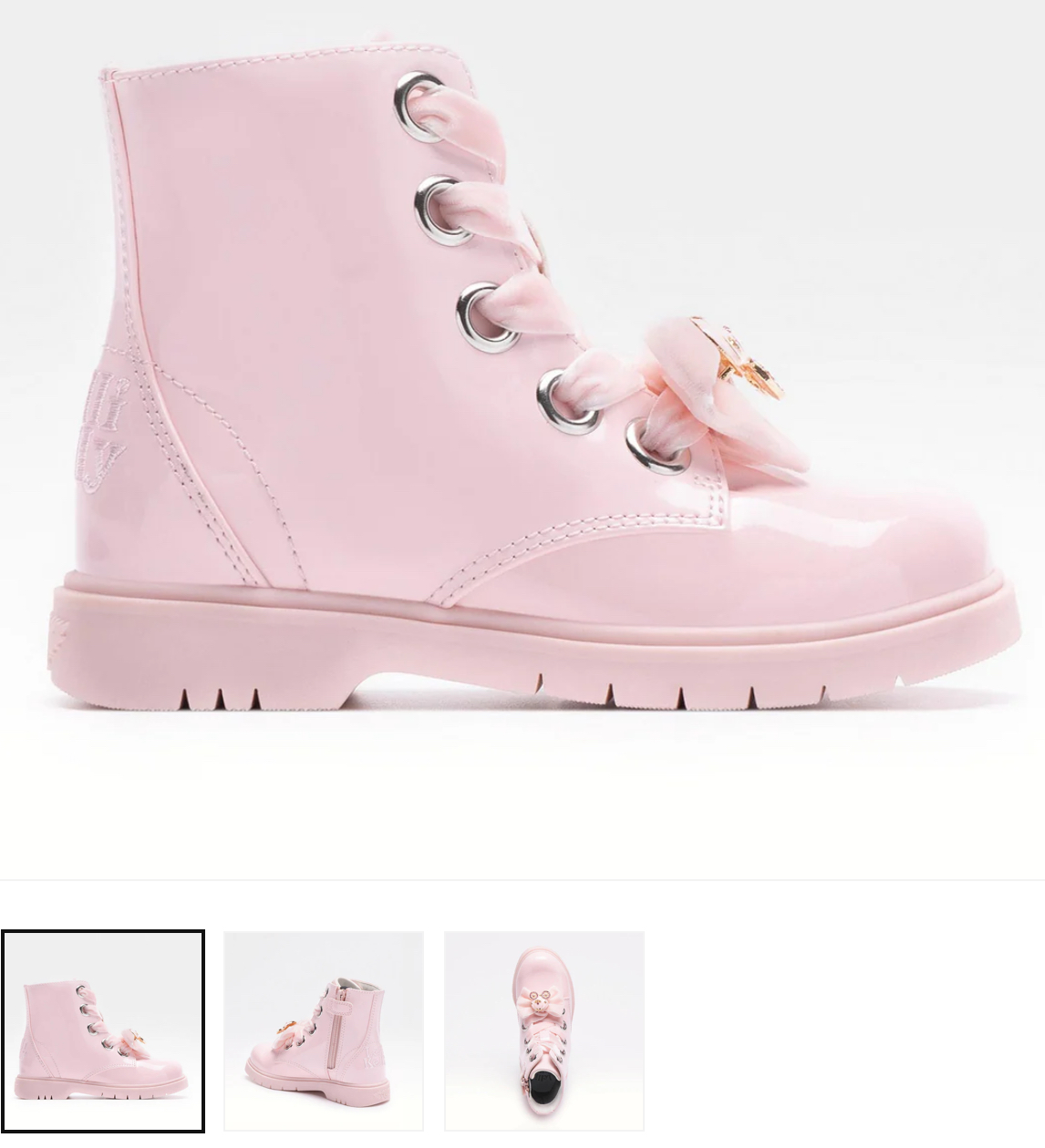 Shiny off white leather ankle boots for JUNIOR, girls by Lelli Kelly, with an embroidered logo on the heel. They fasten with laces for an adjustable fit and have a side zip and velcro tab for quick and easy changing. Softly padded around the ankle, they have a textile mesh lining and a leather insole. The practical, non-slip rubber outer soles have treads for improved grip on wet surfaces.