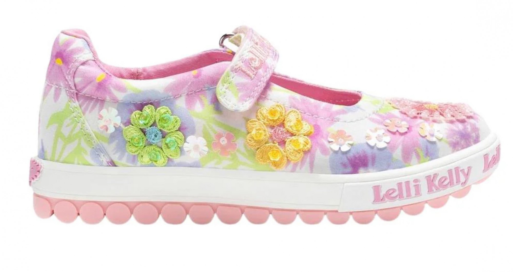 You will feel truly enchanted wearing these Lelli Kelly Eloise dolly canvas shoes. Uppers are decorated with beaded and sequined Flowers. Textile lining and removable moisture wicking insole helps keep those feet fresh. Lelli Kelly branding is embroidered onto the adjustable hook and loop fastening and around the sole unit