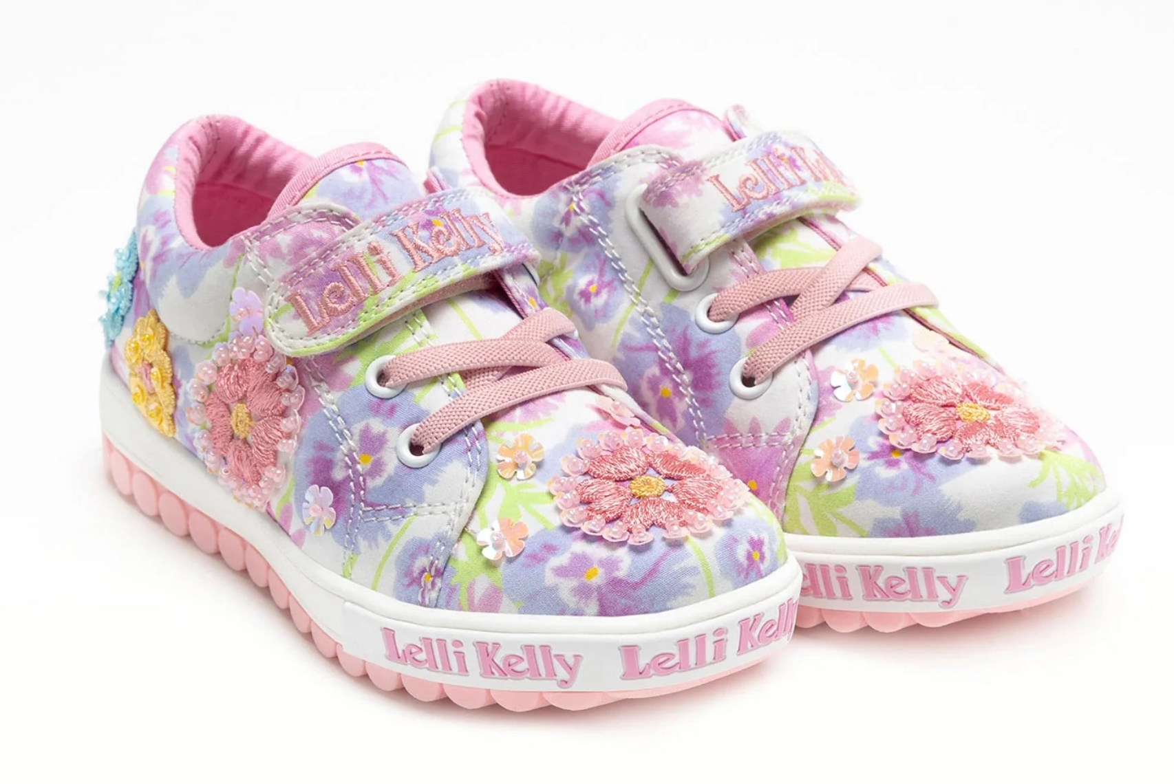 You will feel truly enchanted wearing these Lelli Kelly Eloise trainer canvas shoes. Uppers are decorated with beaded and sequined Flowers. Textile lining and removable moisture wicking insole helps keep those feet fresh. Lelli Kelly branding is embroidered onto the adjustable hook and loop fastening and around the sole unit