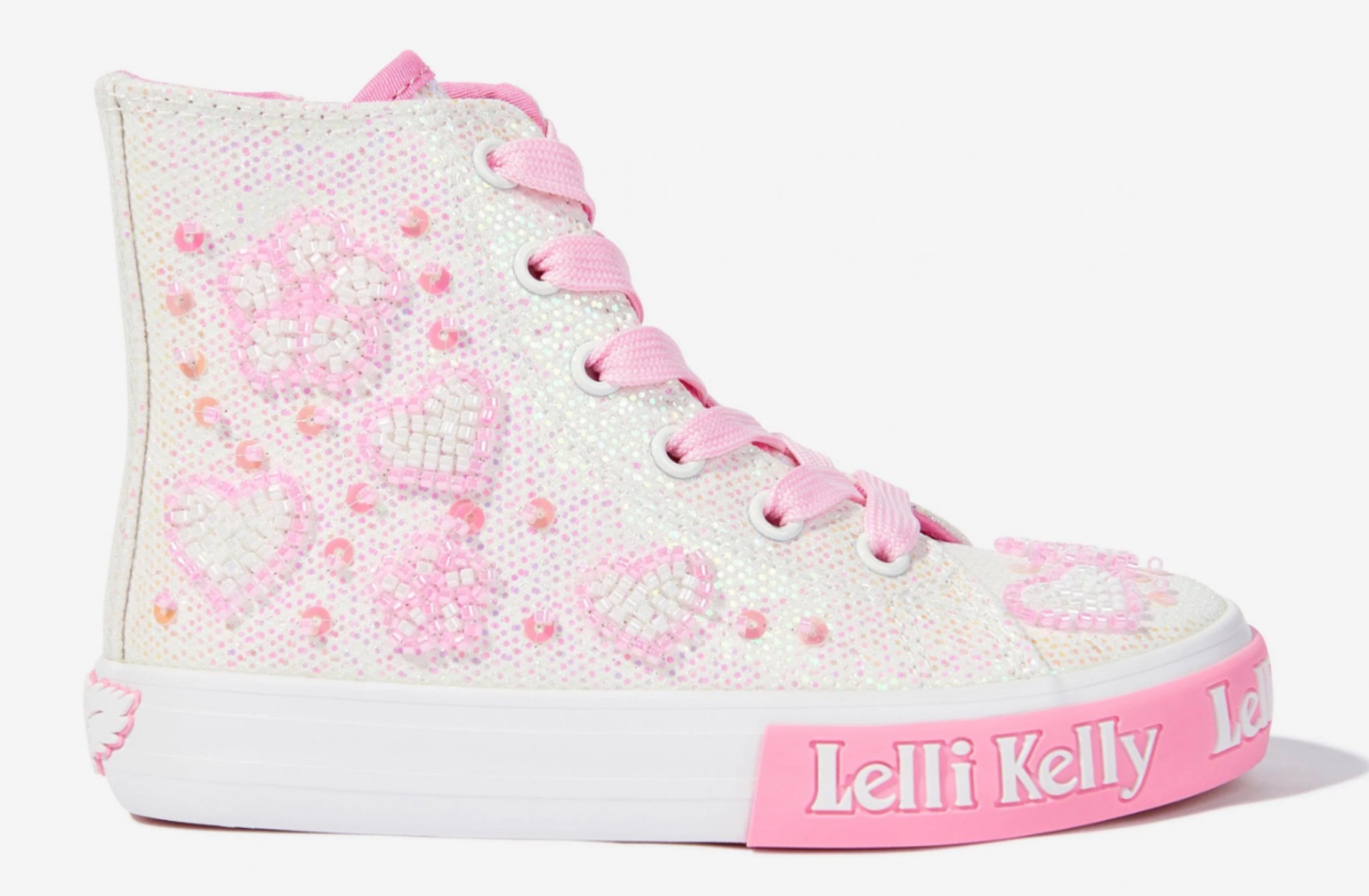 SHIMMERY STUNNING HI TOP, BEADED WITH HEART DETAILS ZIP AND LACES FOR GREAT ADJUSTMENT AND EASY ON AND OFF