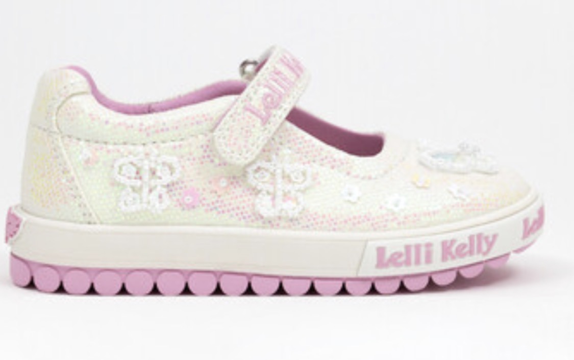 You will feel ready for Summer wearing these Lelli Kelly EMERALD WHITE GLITTER canvas DOLLY SHOES Uppers are decorated with embroidered beaded and sequined embellishments add that delicate detail you come to expect from Lelli Kelly. Pink laces with pink canvas lining. VELCRO fastening allows easy on/off. Lelli Kelly branding on strap and around the sole unit.